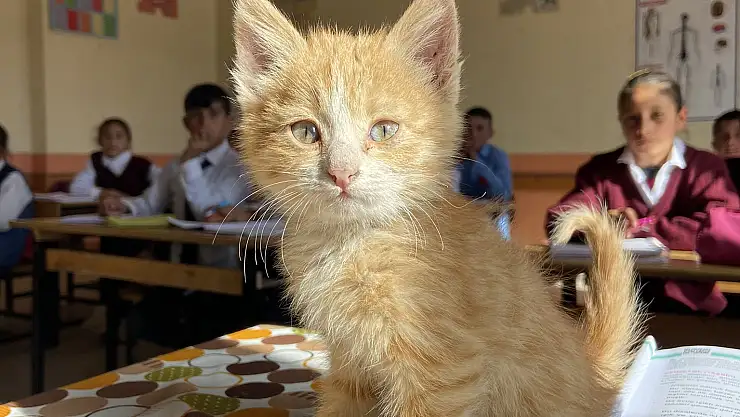 Ağrı'nın Diyadin ilçesine bağlı Hacıhalit köyündeki ilk-orta okulunda öğrenim gören öğrenciler tarafından sahiplenilen ve yiyecek verilip beslenen yavru kedi adeta okulun maskotu haline geldi.