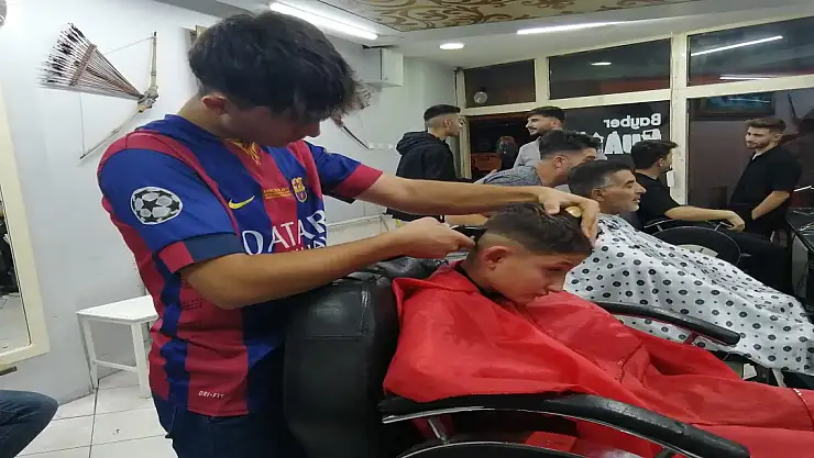 Okulların açılmasına sayılı günler kala, Ağrı'da berberlerde yoğun mesai başladı.