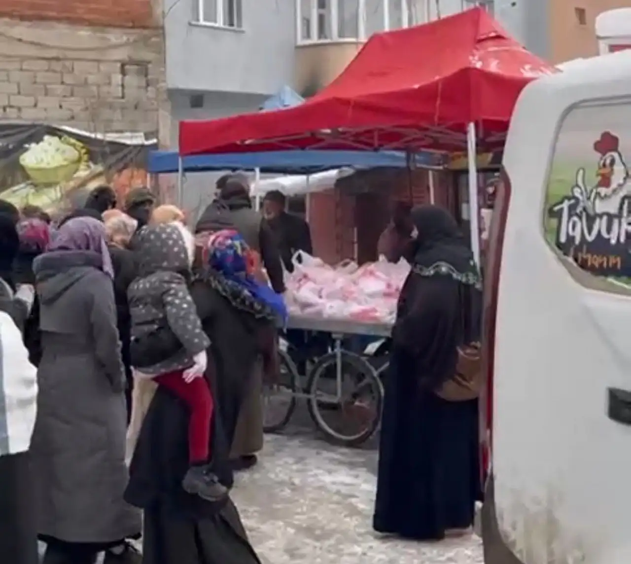 Soğuk havaya rağmen Tavukçu Erhan, her hafta ihtiyaç sahiplerine tavuk dağıtımını sürdürüyor.