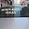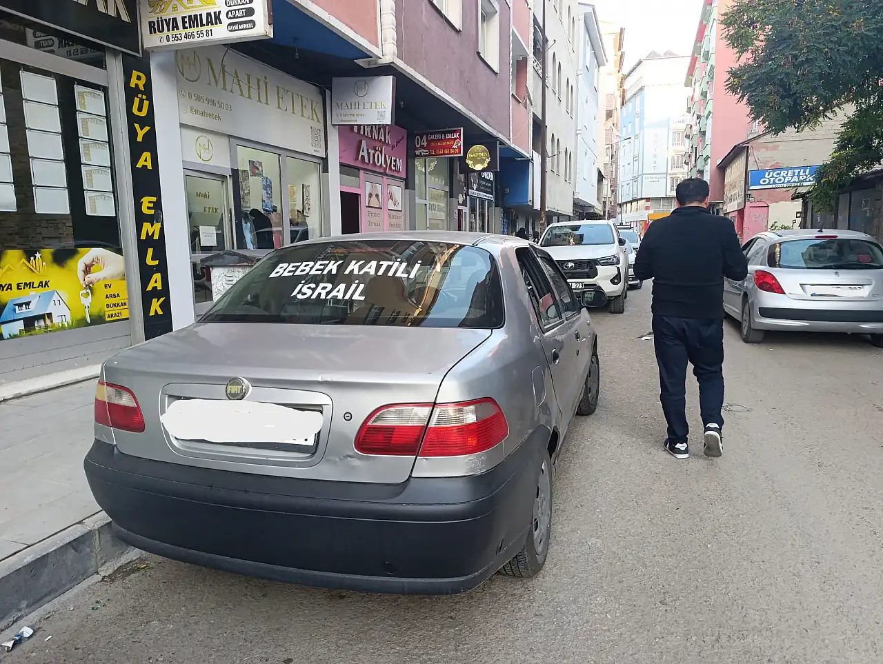 Ağrı şehir merkezinde park halindeki bir araçta yer alan 'Bebek Katili İsrail' yazısı vatandaşların dikkatini çekti.