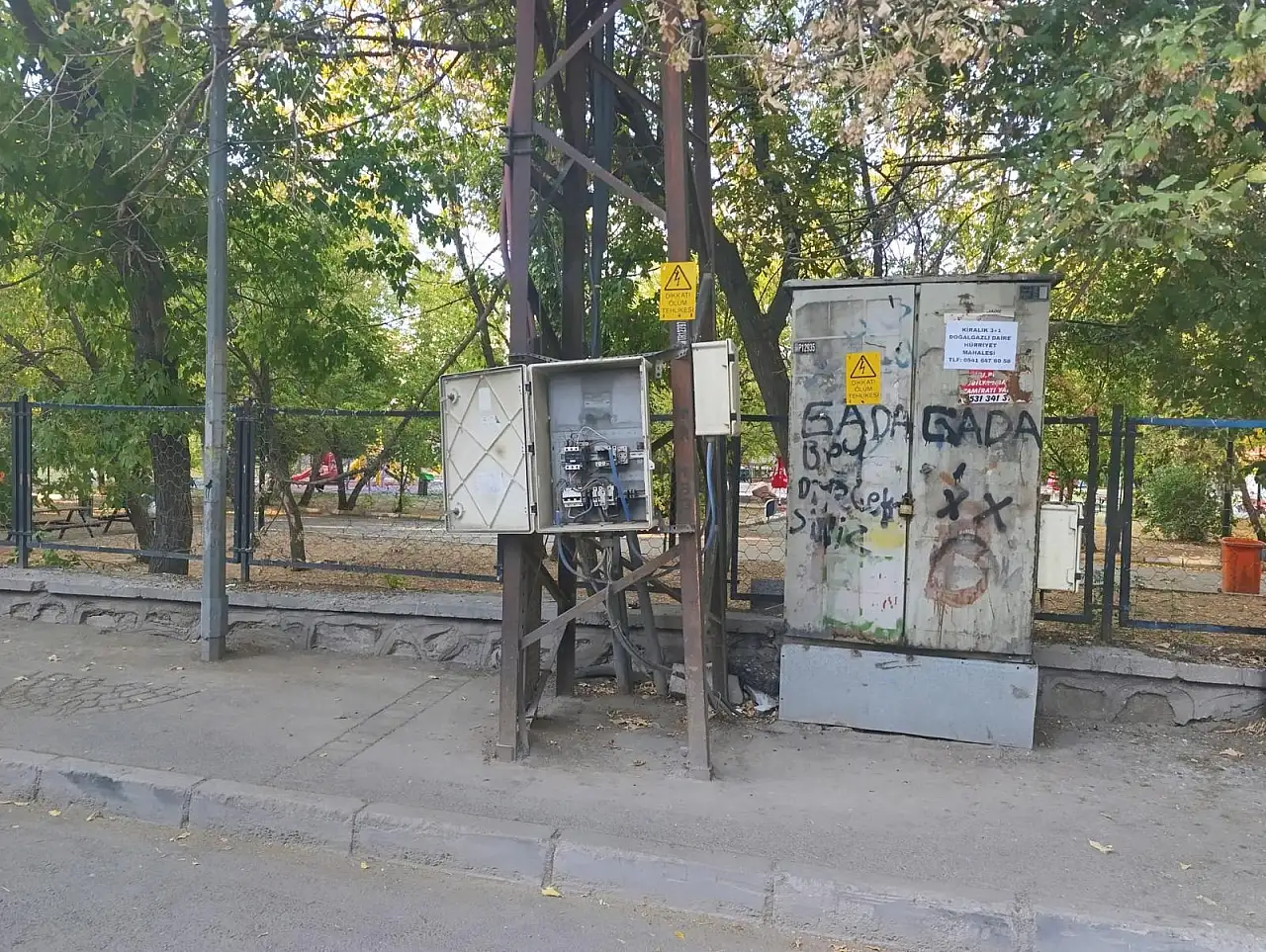 Gazi Mahallesi'nde açık bırakılan trafo, çevre sakinlerinde endişe yarattı. Çocukların oyun oynadığı parkın önündeki açık trafo güvenlik riski oluşturdu.