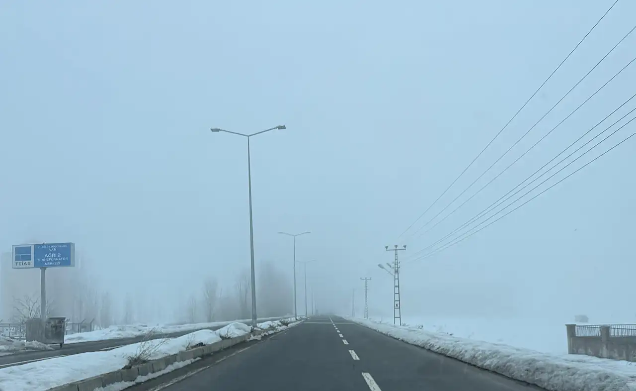 Ağrı’da 16 Şubat Pazartesi günü sabahın erken saatlerinde etkisini gösteren sis, gün içerisinde yer yer dağılırken akşam saatlerinde yeniden yoğunlaştı. Özellikle Ağrı İbrahim Çeçen Üniversitesi yerleşkesini geçtikten sonra Eleşkirt-Erzurum yolu istikametinde sisin daha etkili olduğu gözlemlendi.