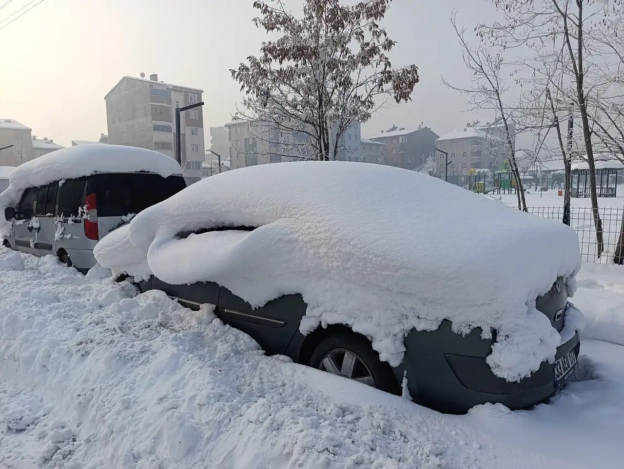 Sabah saatlerinde bile üzerleri örtülü olan araçlar dikkat çekerken, bazı araçların ise günlerdir yerinden oynatılmadığı gözlemlendi. Uzun süredir kullanılmayan bazı araçlar, yoğun kar nedeniyle neredeyse görünmeyecek hale geldi.
