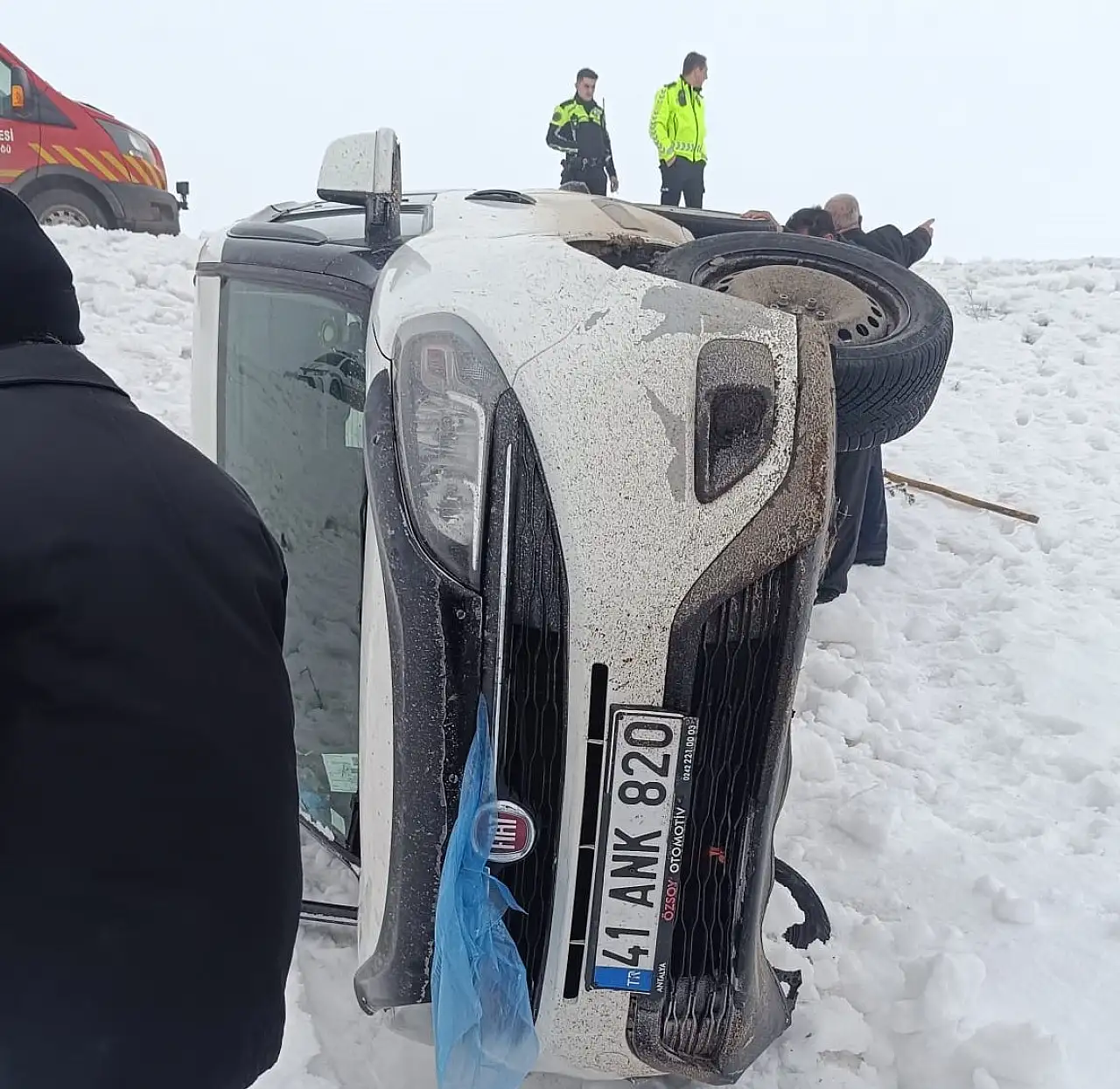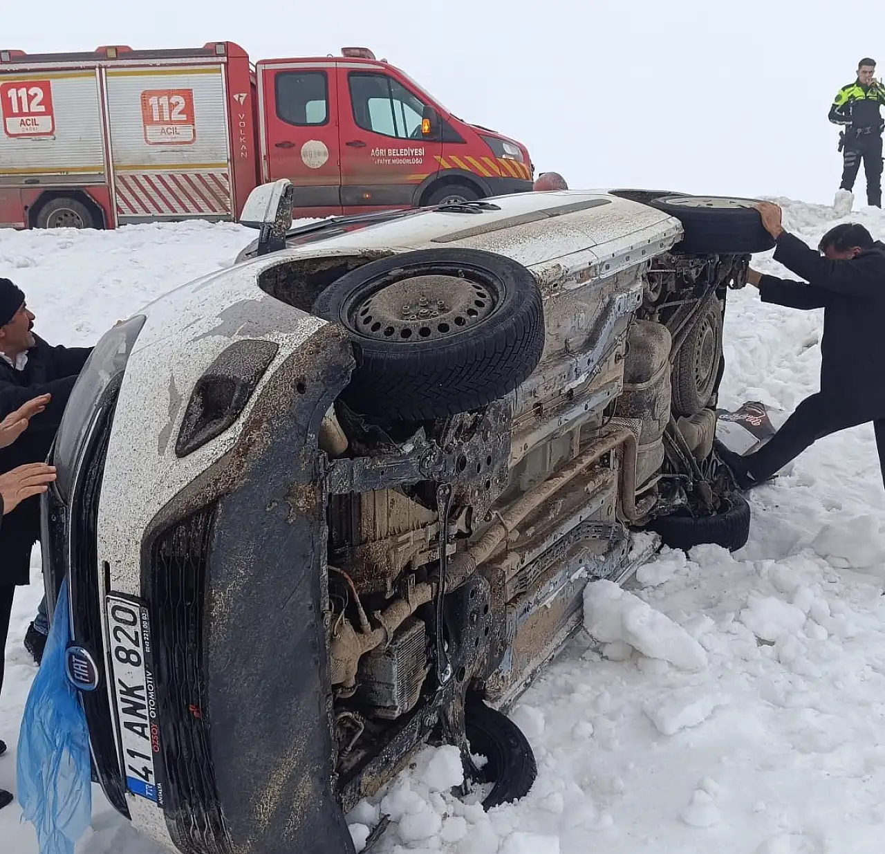 Sis ve soğuk havanın etkili olduğu Ağrı'da kontrolden çıkan otomobil yol kenarına savruldu.