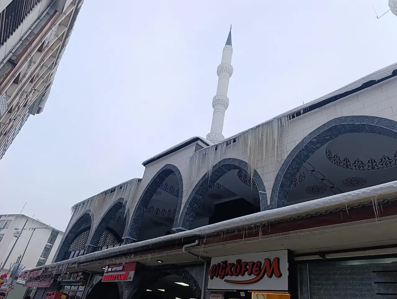 Şehir merkezinde bulunan Ağrı Merkez Camii’nin saçaklarında oluşan sivri buz kütleleri, çevreden geçen vatandaşlar için risk oluşturdu. Caminin çevresinde yürüyen vatandaşlar, buz sarkıtlarının düşme ihtimaline karşı dikkatli davranmak zorunda kaldı. Sabah saatlerinde cami çevresinde buzlanmanın belirgin şekilde arttığı gözlendi.