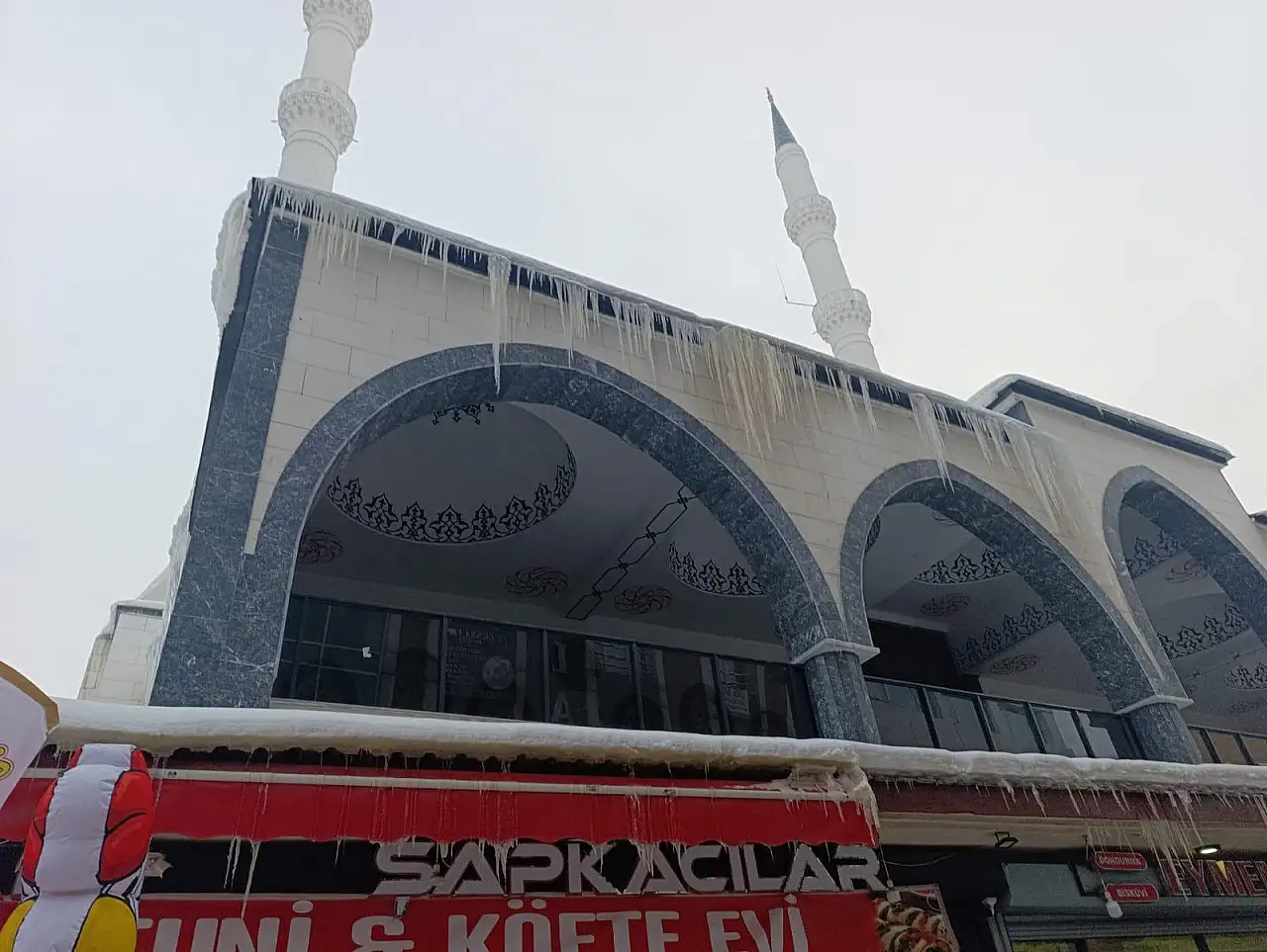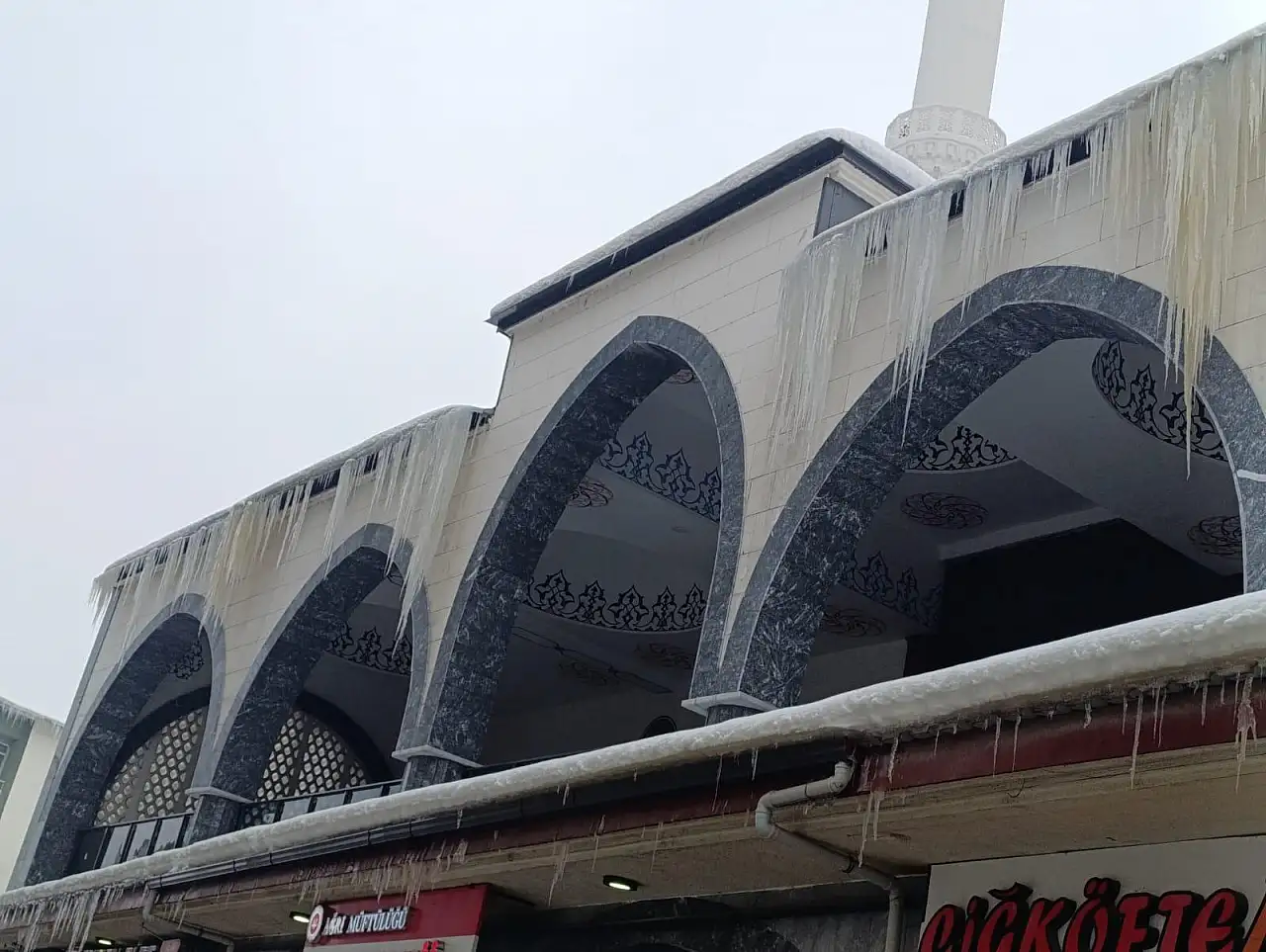 Ağrı'da soğuklar cami saçaklarında buz tehlikesine yol açtı