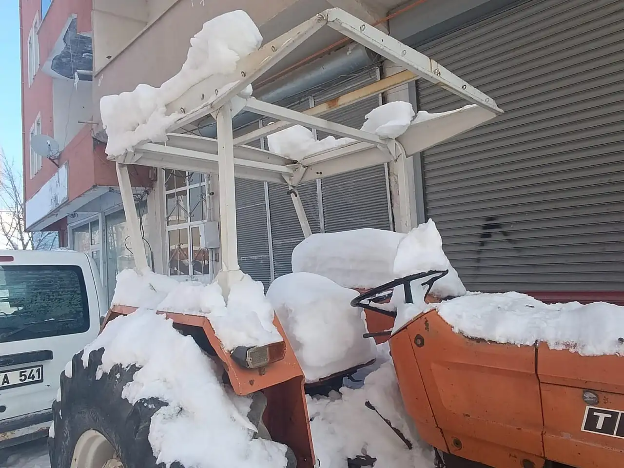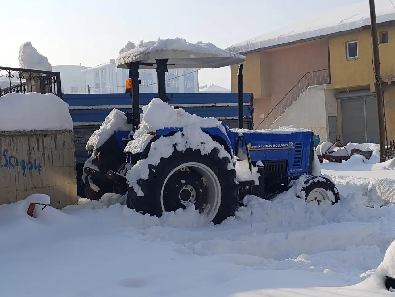 Ağrı'da etkisini artıran dondurucu soğuklar ve kar yağışı, park halindeki araçların yanı sıra açık alanda bulunan traktörleri de olumsuz etkiliyor.