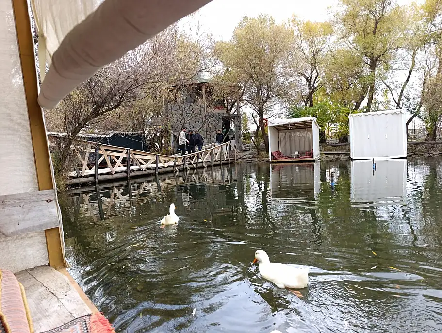 Ağrı'da sonbahar havası, nehir üstünde ördeklerle renklendi