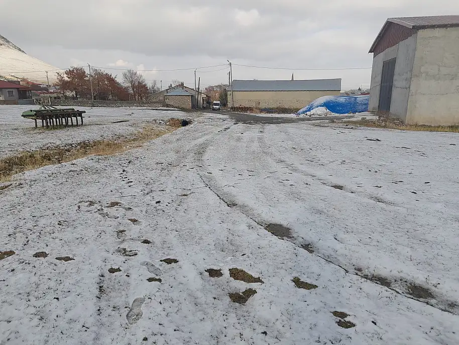 Ağrı'da sonbaharda ekilen tohumlar, baharı beklemek üzere mevsimin ilk karıyla birlikte beyaz örtünün altında kaldı.