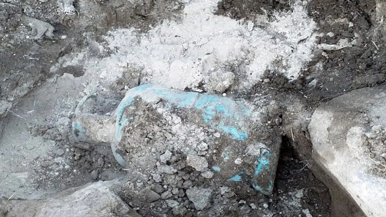 Ağrı'da terör örgütüne yönelik sürdürülen operasyonda toprağa gömülü bir teröristin cesedi ve 15 adet tüp bulundu.