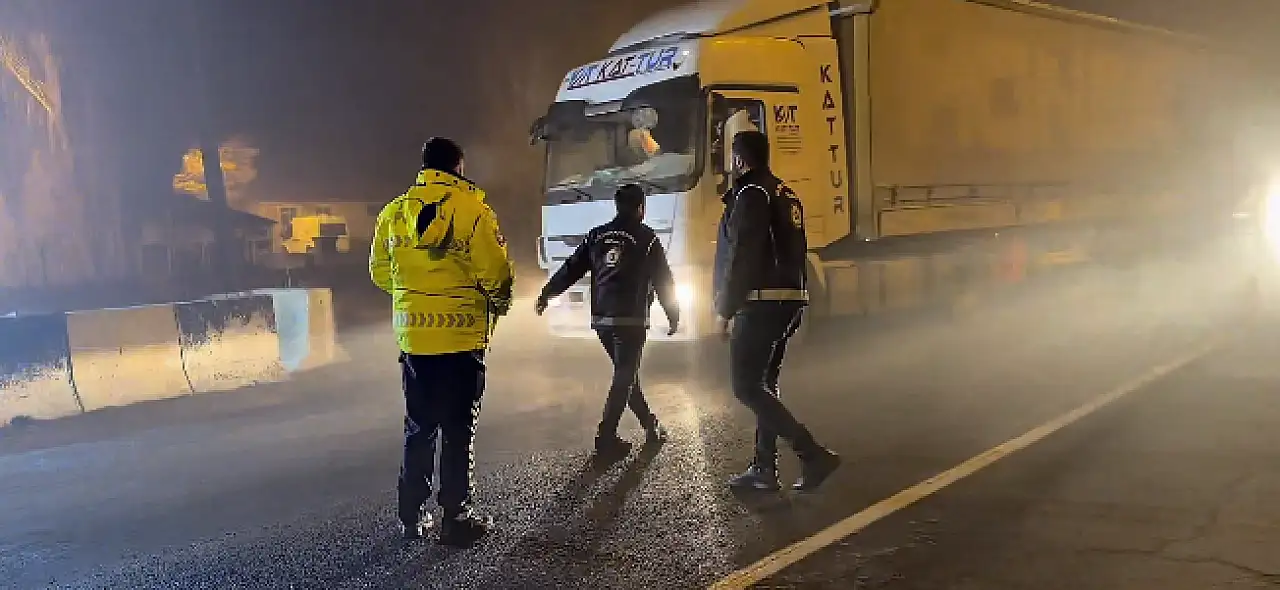 Ağrı'da uygulama noktasında durdurulan tırın dorsesinden 14 düzensiz göçmen çıktı.