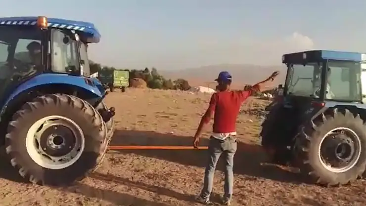 Taşlıçay ilçesine bağlı Aşağı Toklu Köyü’nde traktör sürücüleri ilginç bir yönteme başvurdu. Farklı modellerde 2 traktörün gücünü denemek isteyen vatandaşlar traktörleri boş bir alana getirerek halatlarla birbirlerine bağlayarak güç denemesi yaptı. Çevrede bulunan vatandaşlar tarafından kaydedilen görüntülerde traktörlerin kıran kıran başlayan yarışı dakikalarca sürüyor. Birinci olmak için yoğun çaba sarf eden traktör sürücülerinin mücadelesi kameraya yansıyor. Sıra dışı görüntülere sahne olan yarışa çevredeki vatandaşlarında heyecanla takip ettiği görülüyor. Yarışma bir traktörün yarışı kazanmasının ardından sona eriyor. Sosyal medyada da paylaşılan görüntüler kısa sürede binlerce beğeni aldı.