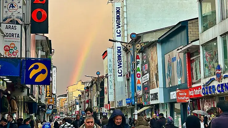 Ağrı merkez Cumhuriyet Caddesi üzerinde yağış sonrası görüntülediğimiz kentte beliren gökkuşağı, kırmızıdan maviye kadar tüm renkleriyle adeta bir doğa tablosu oluşturdu. Gökkuşağını fark eden vatandaşlar, bu renk cümbüşünü kaçırmamak için gökyüzünü izleyerek bol bol fotoğraf çekti. Doğanın bu nadir ve özel anına tanıklık eden Ağrılılar, anı fotoğraflamak için cep telefonlarına sarıldılar. Gökkuşağının en net göründüğü bölgelerde durarak, o anları ölümsüzleştirmek için yarışan Ağrılılar, çektikleri fotoğrafları ise sosyal medya platformlarında yayınladılar.