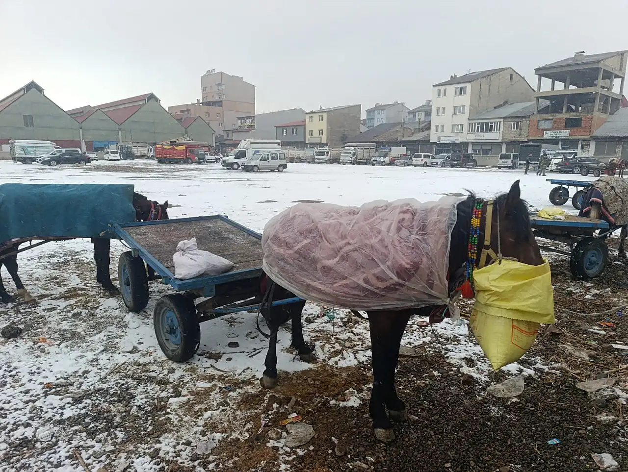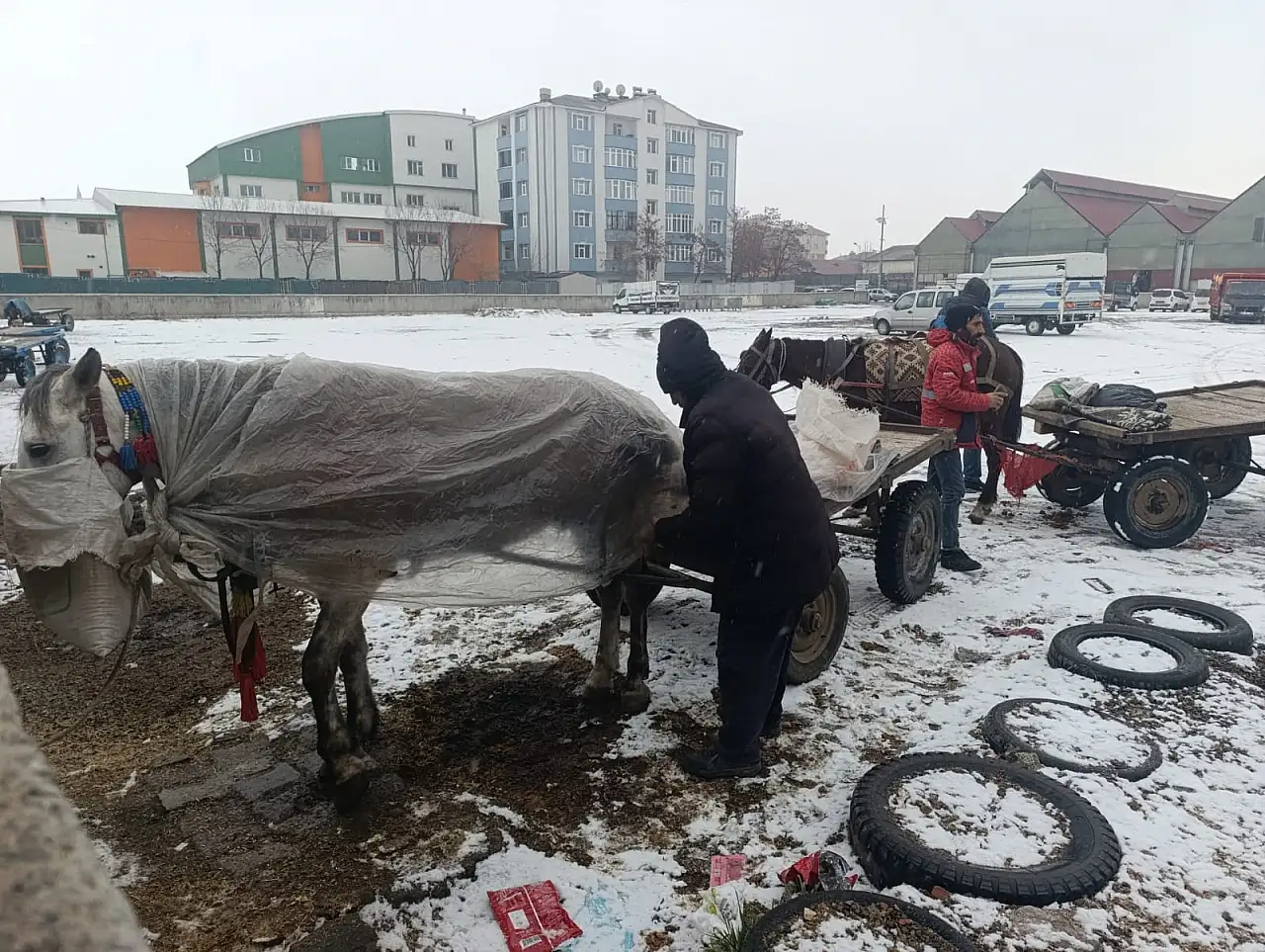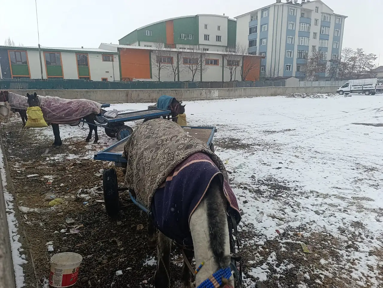 At arabacıları, hayvanlarını dondurucu rüzgâr ve soğuktan koruyabilmek için önce naylonlarla sarıyor, ardından üzerlerine battaniyeler örterek ısı kaybını önlemeye çalışıyor. Gece saatlerinde atların dışarıda kalmaması için imkânları ölçüsünde kapalı alanlar oluşturan vatandaşlar, zor şartlara rağmen hayvanlarını yalnız bırakmıyor.