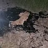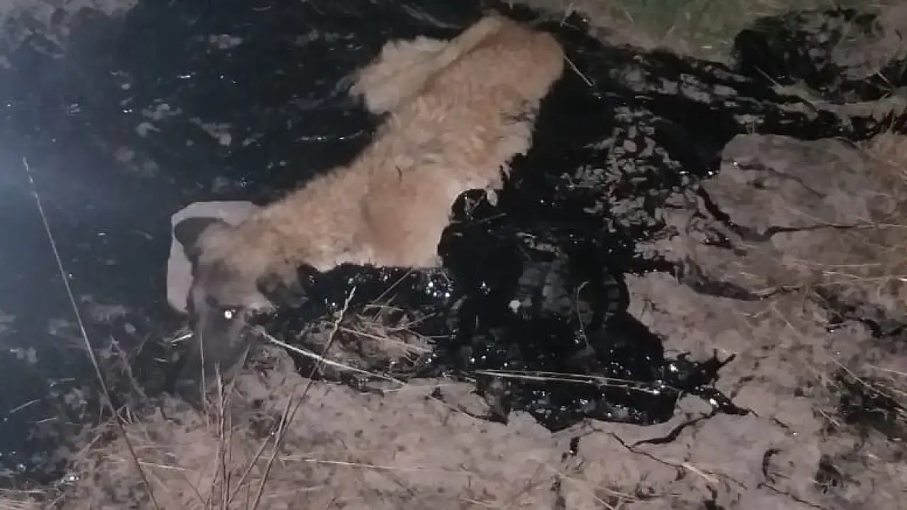 Ağrı'nın Doğubayazıt ilçesinde Dooğubayazıt- Ağrı karayolu kenarında asfalt zifti birikintisine düşen köpek itfaiye ekipleri tarafından kurtarıldı