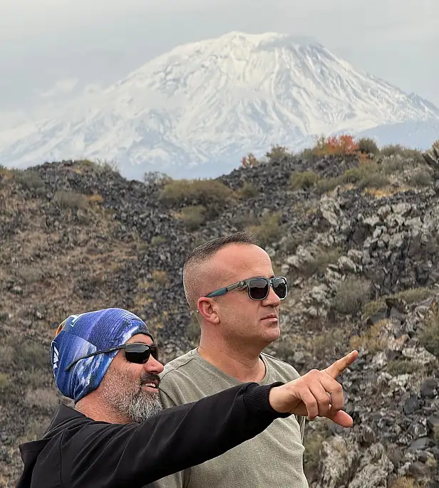 Küçük Ağrı Dağı ve Büyük Ağrı Dağı'nın yan yana görüntüsü, doğa severlere unutulmaz anlar sundu.