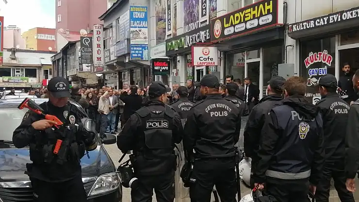 Ağrı'da Kobani davası sonrası verilen kararların ardından DEM Parti Ağrı İl Başkanlığı önünde toplanan kalabalık ile polis arasında gerginlik yaşandı.