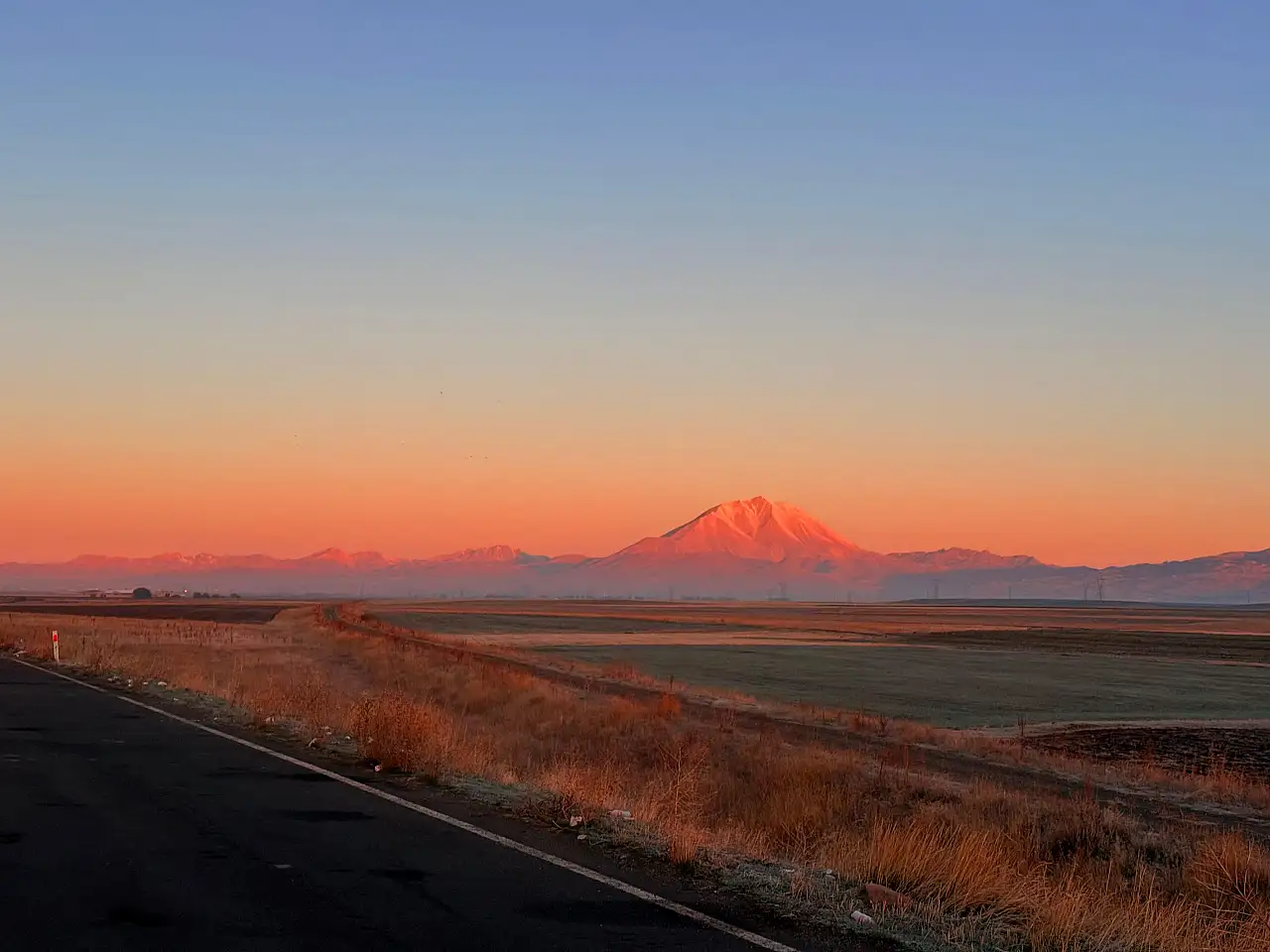 Ağrı’da Kasım ayının ikinci gününde, sabahın erken saatlerinde, Ağrı-Eleşkirt yolunda muazzam bir doğa olayı kaydedildi. Saat 6:40 civarında, güneşin doğuşuyla birlikte ortaya çıkan manzara, büyüleyici bir kırmızı tonun etkisiyle karşısındaki Köse Dağı'na yansıdı. Karaköse Haber muhabiri, bu eşsiz anı görüntüleyerek, sabah saatlerinin ilk ışıklarıyla doğanın güzelliğini objektifine yansıttı.