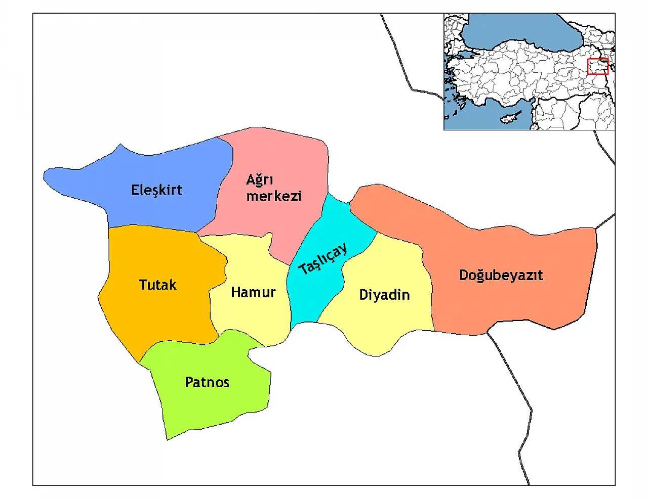 - Doğubayazıt (en kalabalık ilçelerden biri, Ağrı Dağı burada)