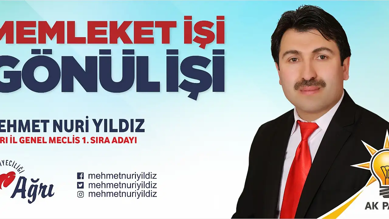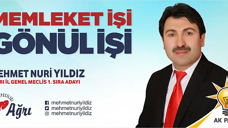 Adalet ve Kalkınma Partisi Ağrı İl Başkan Yardımcılığı görevini de yürüten Mehmet Nuri Yıldız, 31 Mart Mahalli İdareler Seçimlerinde partinin 1. Sıra adayı oldu. Genç yaşına rağmen Ağrılılar tarafından oldukça sevilen Yıldız’ın adaylığı vatandaşlar tarafından olumlu karşılandı. Listenin ilk sırasında olmanın kendilerine ayrı bir sorumluluk yüklediğini belirten Mehmet Nuri Yıldız, bu yükün altından ancak gece gündüz çalışarak çıkabileceğini söyledi. Çalışma arkadaşları ile birlikte kısa süre içerisinde alana inerek çalışmaya başlayacaklarını ifade eden Yıldız “Partimiz bize inanarak büyük bir sorumluluk verdi. Allah’ın izniyle bu sorumluluğun bilince olarak aralıksız çalışmayı sürdüreceğiz. Diğer İl Genel Meclis Üyeleri ağabeylerimle birlikte el, ele vererek listemizi kazandırmaya çalışacağız. Rabbim çıktığımız bu kutlu yolculukta bizleri bu millete karşı mahcup etmesin” ifadelerini kullandı.