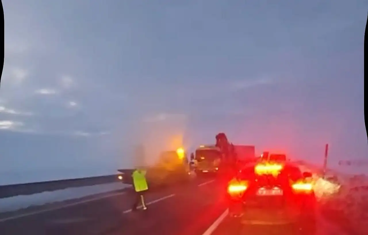 Doğubayazıt–Ağrı yolunda buzlanma kazaya neden oldu, TIR ters şeride girdi.