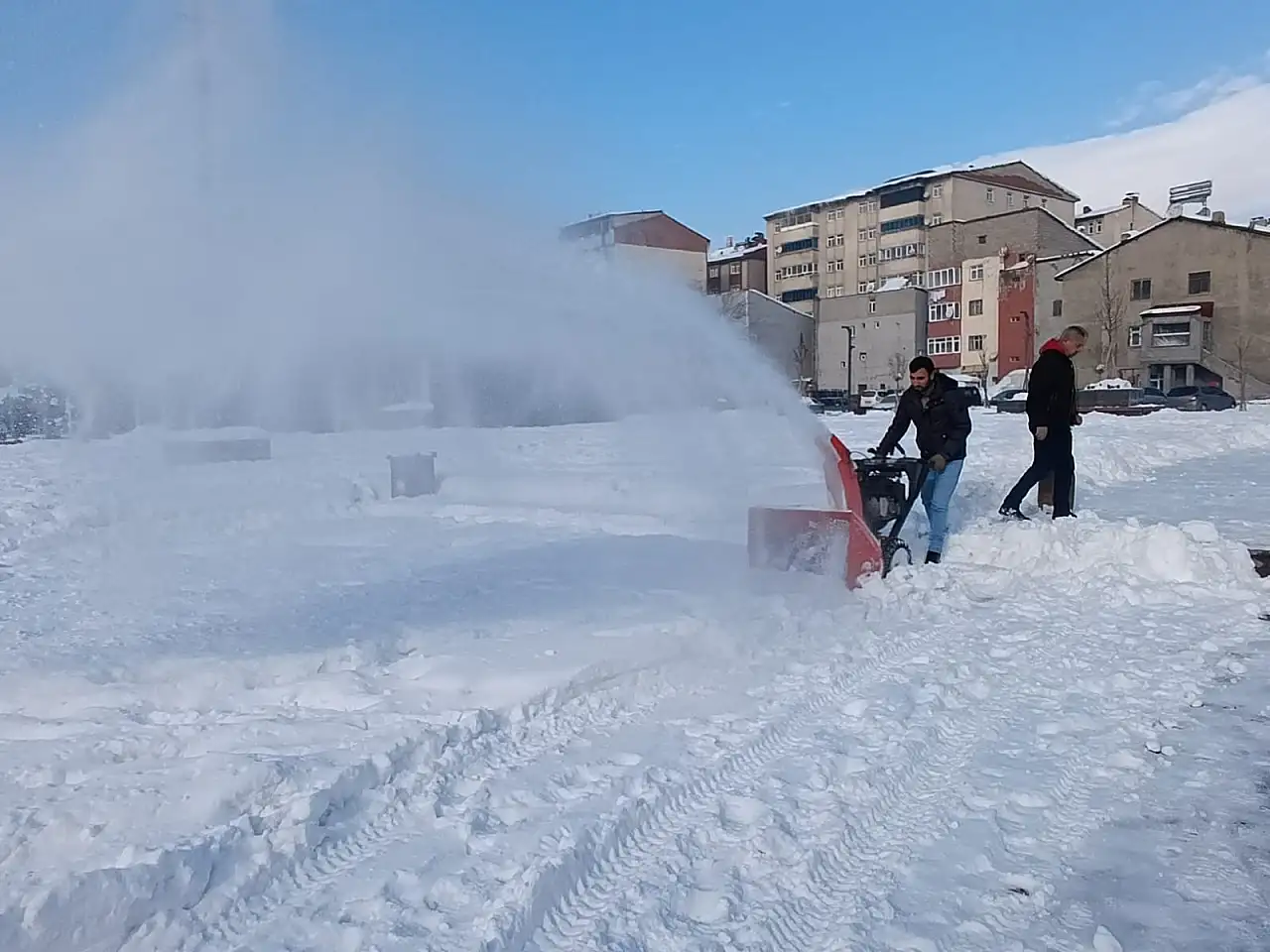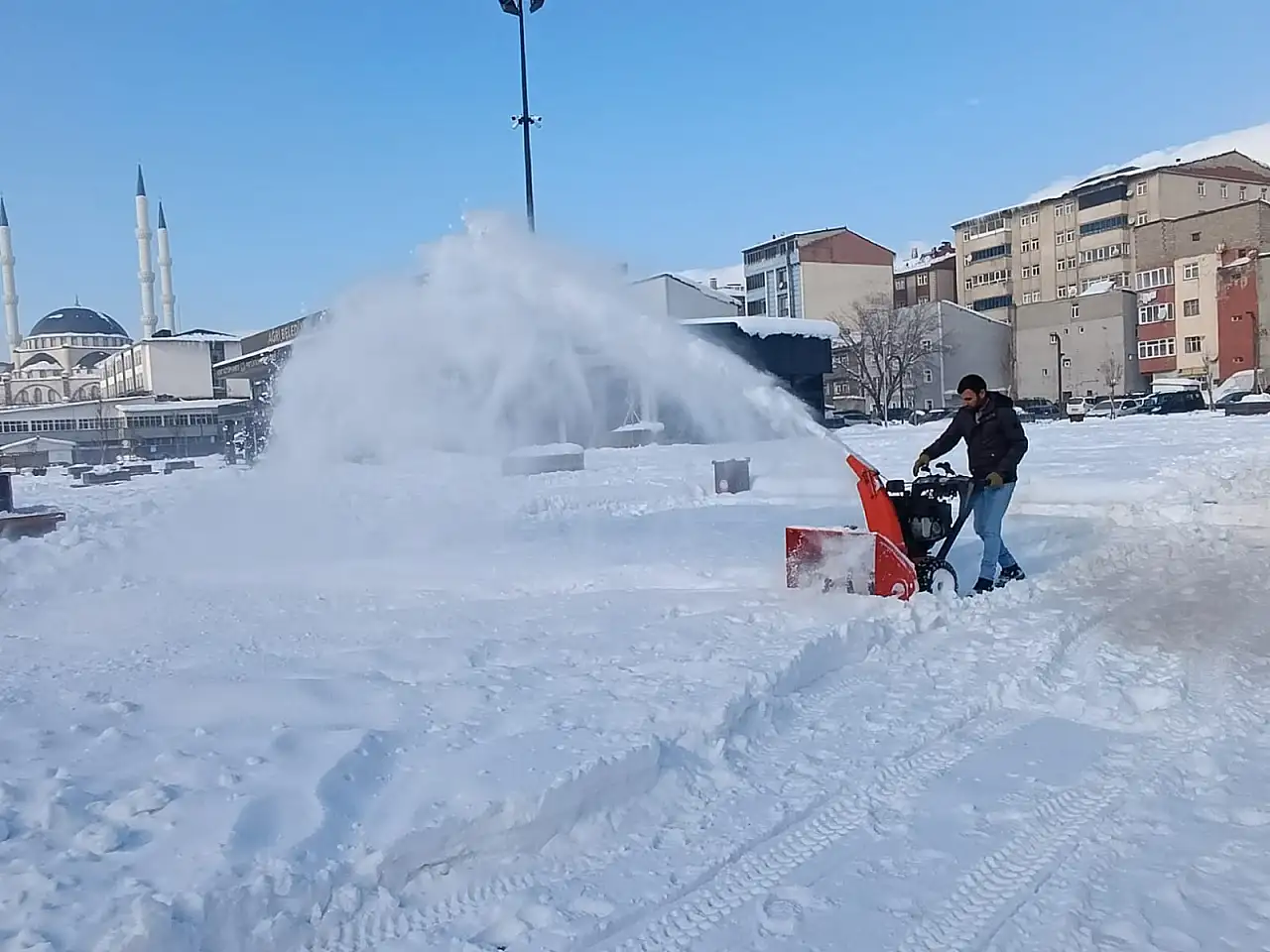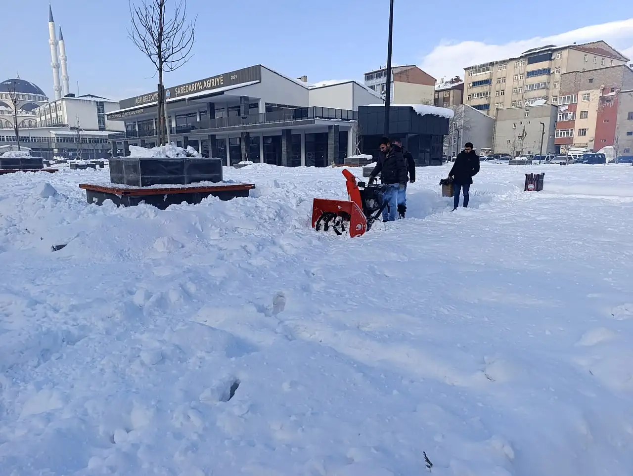 Ağrı Belediyesi ekipleri, kent meydanında kar küreme çalışması gerçekleştirdi.