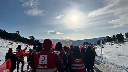 Ağrı Kızılay gönüllüleri Sarıkamış'ta şehitler için -15 derecede yürüdü
