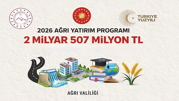 2026 Yılı Kamu Yatırım Programı kapsamında Ağrı'da ulaştırma, sağlık, eğitim, tarım ve kamu hizmetleri alanlarında uygulanacak 23 proje için toplam 2 milyar 507 milyon TL ödenek ayrıldı.