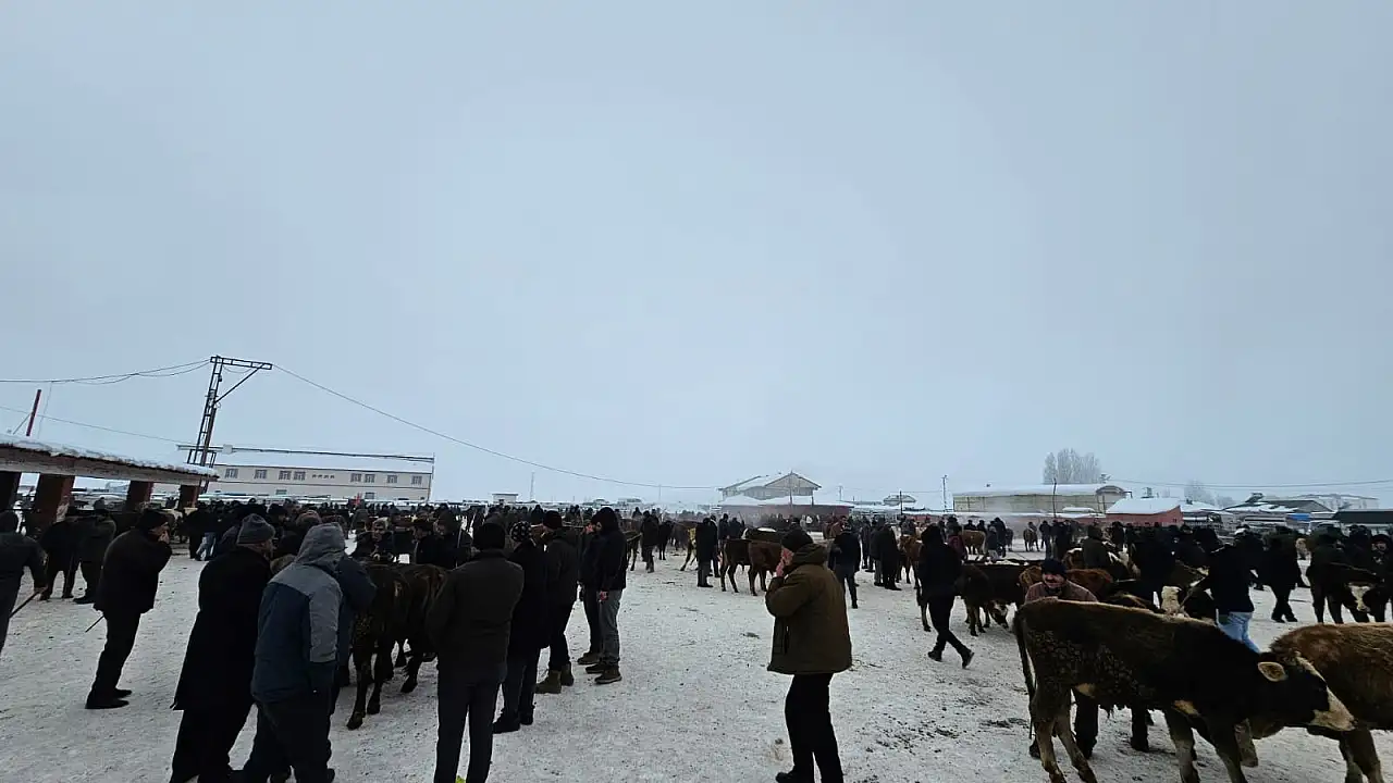Ağrı Hayvan Borsası'nda dondurucu soğuklara rağmen hayvan ticareti yıl boyunca sürüyor.