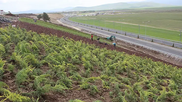 Ağrı-Hamur karayolunda, havalimanı güzergahı üzerinde 90 dönümlük alanda Ağrı Belediyesi tarafından başlatılan peyzaj çalışmaları devam ediyor.