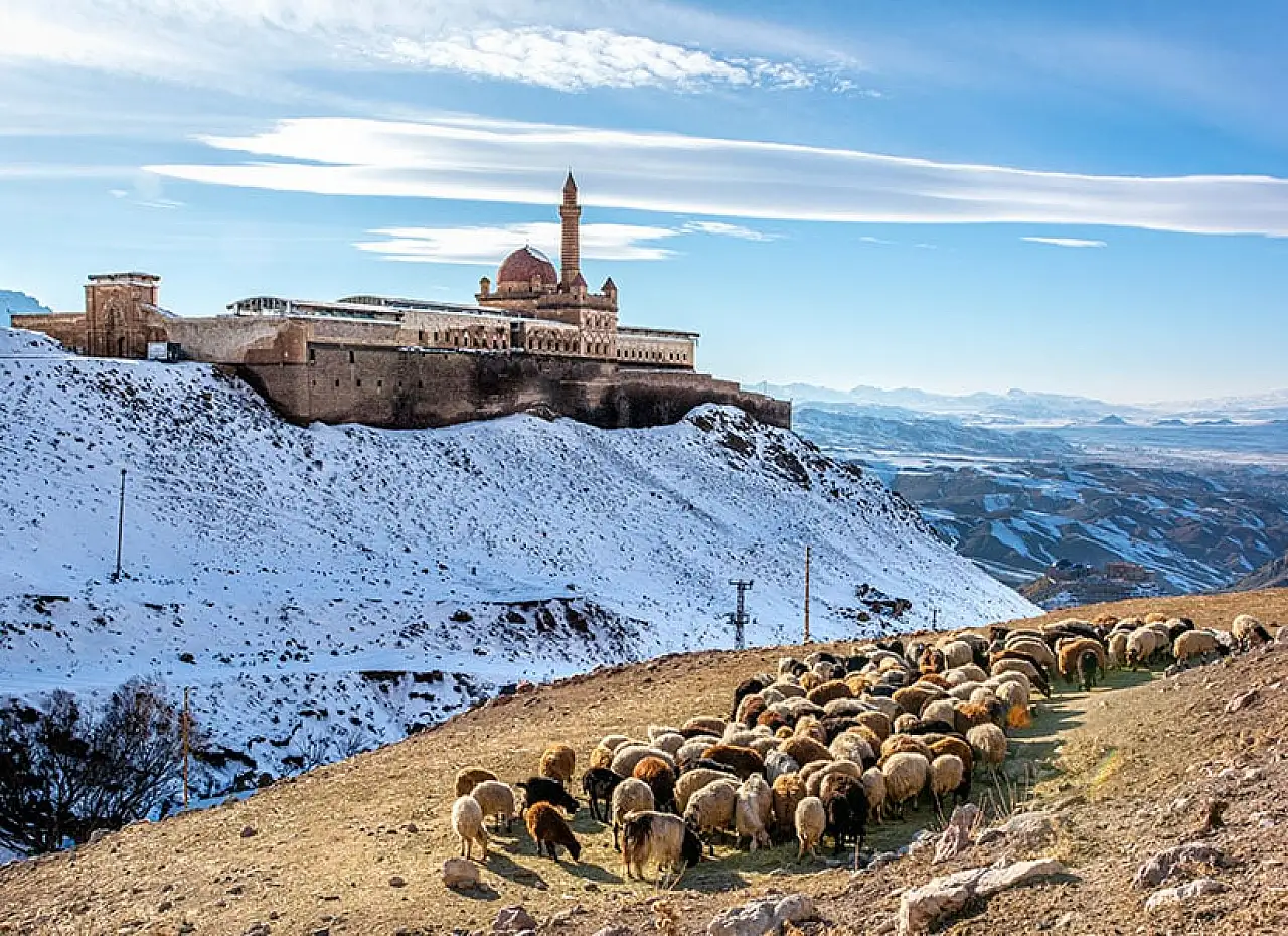 Tarih için olduğu kadar sanat tarihi açısından da önemli bir yere sahip olan İshak Paşa Sarayı, Osmanlı döneminde Ağrı’da yapılan en büyük ve en önemli mimari eser olarak anılıyor. Saray, yılın her döneminde ziyaret edilebiliyor.