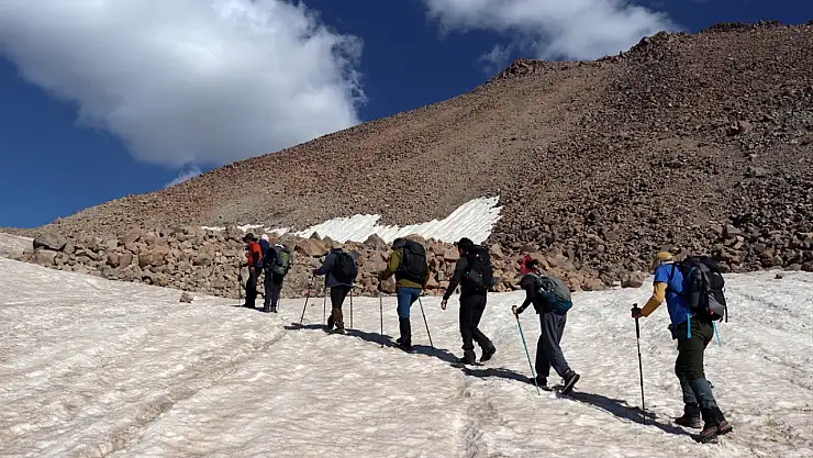 Türkiye'nin üçüncü yüksek zirvesi Süphan Dağı, dağcıları çiçeklerle başlayan ve karla biten zorlu bir yolculukla karşıladı.