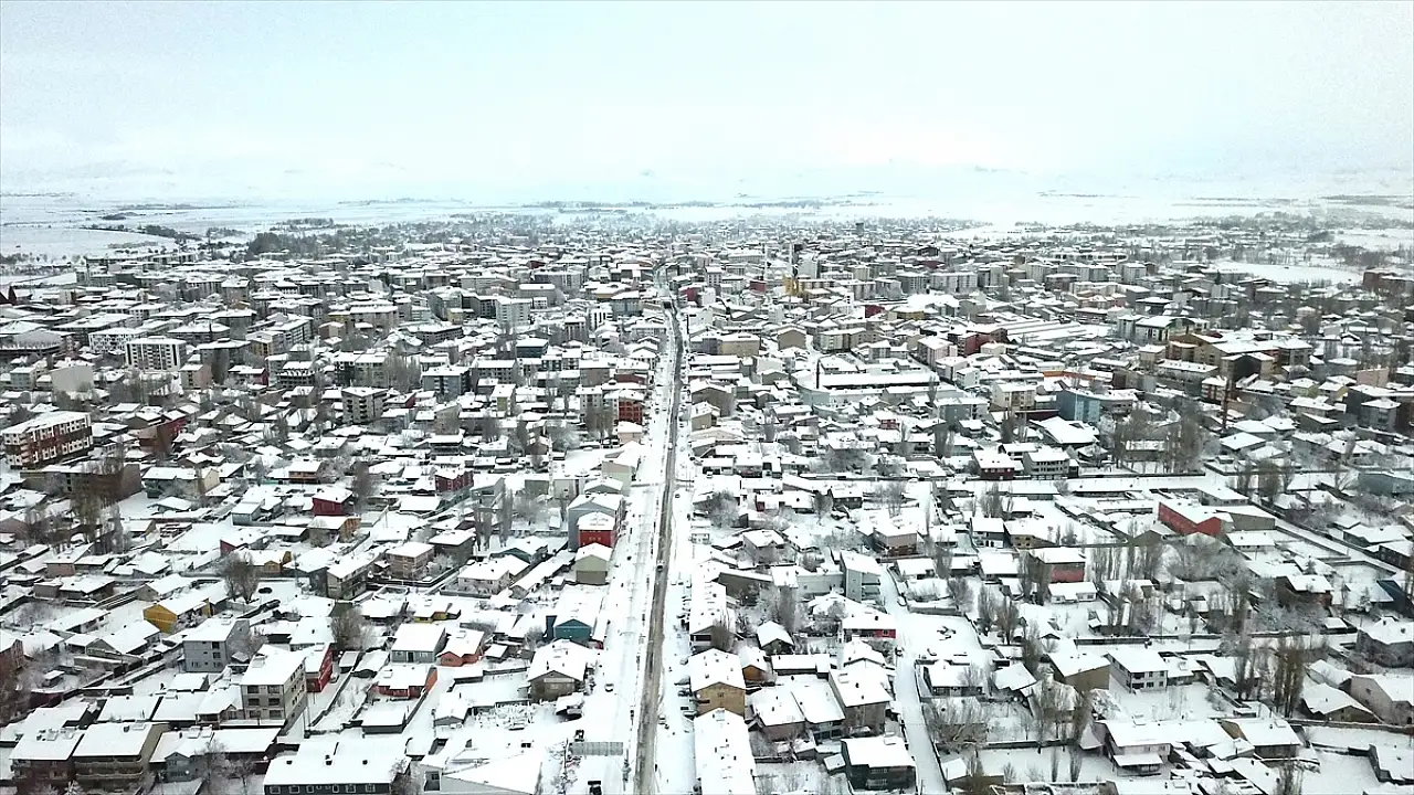 Ağrı’da ise kar yağışı kenti adeta beyaza bürüdü. Dün başlayan kar, gece saatlerinde etkisini artırarak devam etti. Yer yer tipinin de etkili olduğu kent merkezi ve çevresi, kısa sürede kar örtüsüyle kaplandı. Kent merkezinde bulunan binaların çatıları, yollar ve kaldırımlar beyaz örtüyle kaplanırken, çevredeki dağlar da kar manzarasıyla dikkat çekti. Oluşan manzara, dronla havadan görüntülendi.