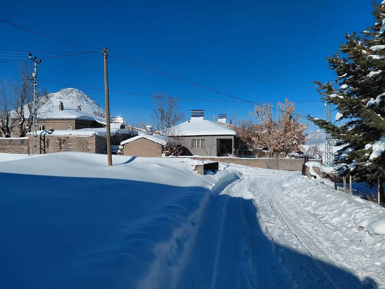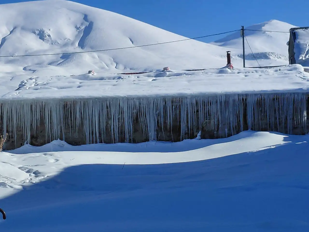 “Her taraf kar altında. Köyün tamamı beyaza büründü. Çatılarda büyük buz sarkıtları oluştu. Sabah evden çıkmak bile zor oluyor. Hayvanlara bakmak için sürekli kar temizliyoruz. Soğuk çok etkili ama buna alışığız, dikkatli olmaya çalışıyoruz.”