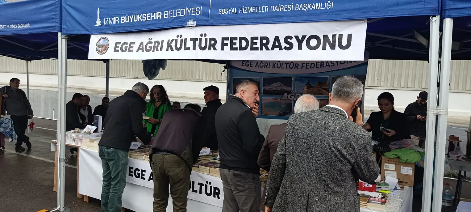 Ege Ağrı Kültür Federasyonu, İzmir İZKİTAP Fuarı'nda yazarlarla buluşarak Ağrı'nın kültürünü tanıttı. Kitaplar, imzalar ve ziyaretçilerle dolu dolu geçen etkinlik büyük ilgi gördü.