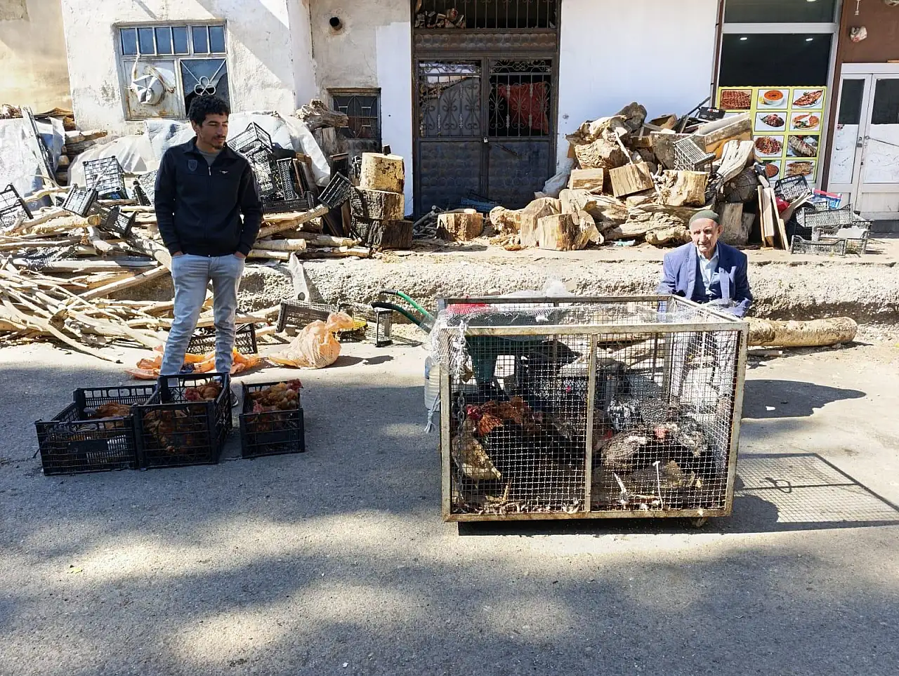 Ağrı sebze pazarında canlı tavuk satışları devam ediyor