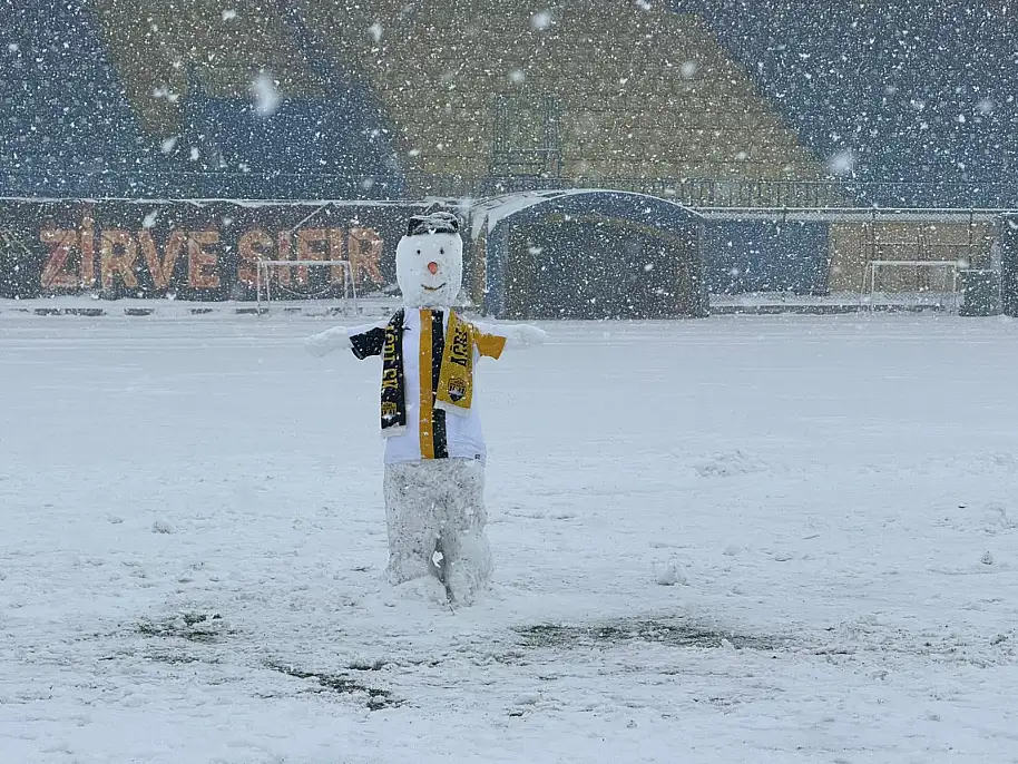 Ağrı'da 9 Ocak'ta yeniden etkili olan kar yağışı, bu kez tribünlerden sahaya uzanan farklı bir moral çalışmasına sahne oldu.