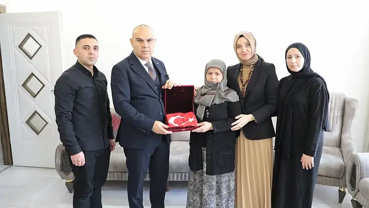 Aileler ile bir süre sohbet ederek şehitler için dualar eden Vali Koç, daha sonra şehit ve gazi ailesine Türk Bayrağı takdim etti.