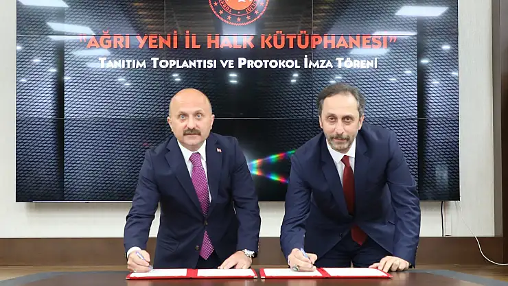 Daha sonra Ağrı Valiliği ile Kültür ve Turizm Bakanlığı Kütüphaneler ve Yayımlar Genel Müdürlüğü arasında düzenlenen Ağrı Yeni İl Halk Kütüphanesi Protokolü için Vali Dr. Osman Varol ile Kütüphaneler ve Yayımlar Genel Müdür V. Ali Odabaş tarafından imzalar atıldı.