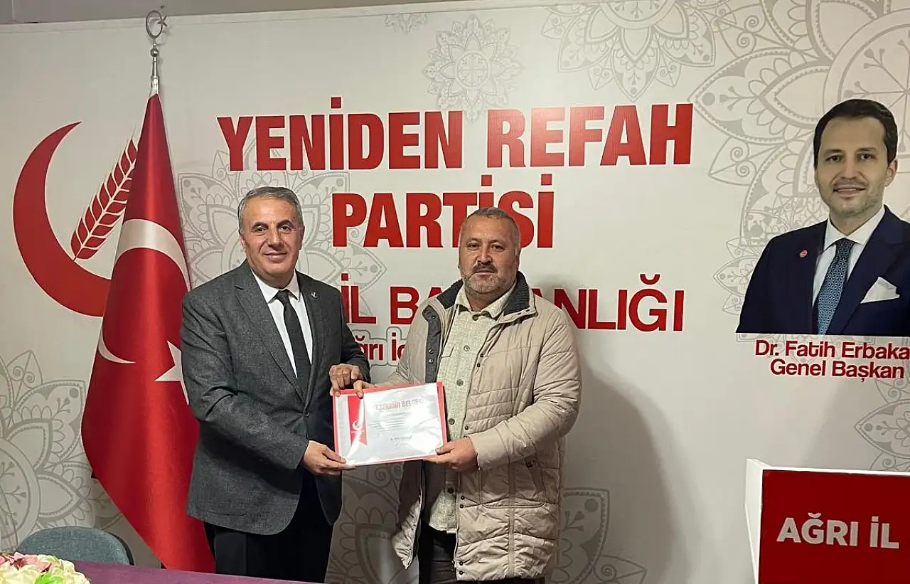 Ağrı Yeniden Refah Partisi, son kongrelerine katılım gösteren ilçe başkanlarına teşekkür belgelerini takdim etti. Genel Başkan Vekili ve İl Başkanı Aydın Kuruş tarafından, merkez ilçe ve ilçelerin başkanlarına teşekkür belgeleri verildi. Belgeler, partinin Ağrı il başkanlığı binasında düzenlenen bir törenle takdim edildi.