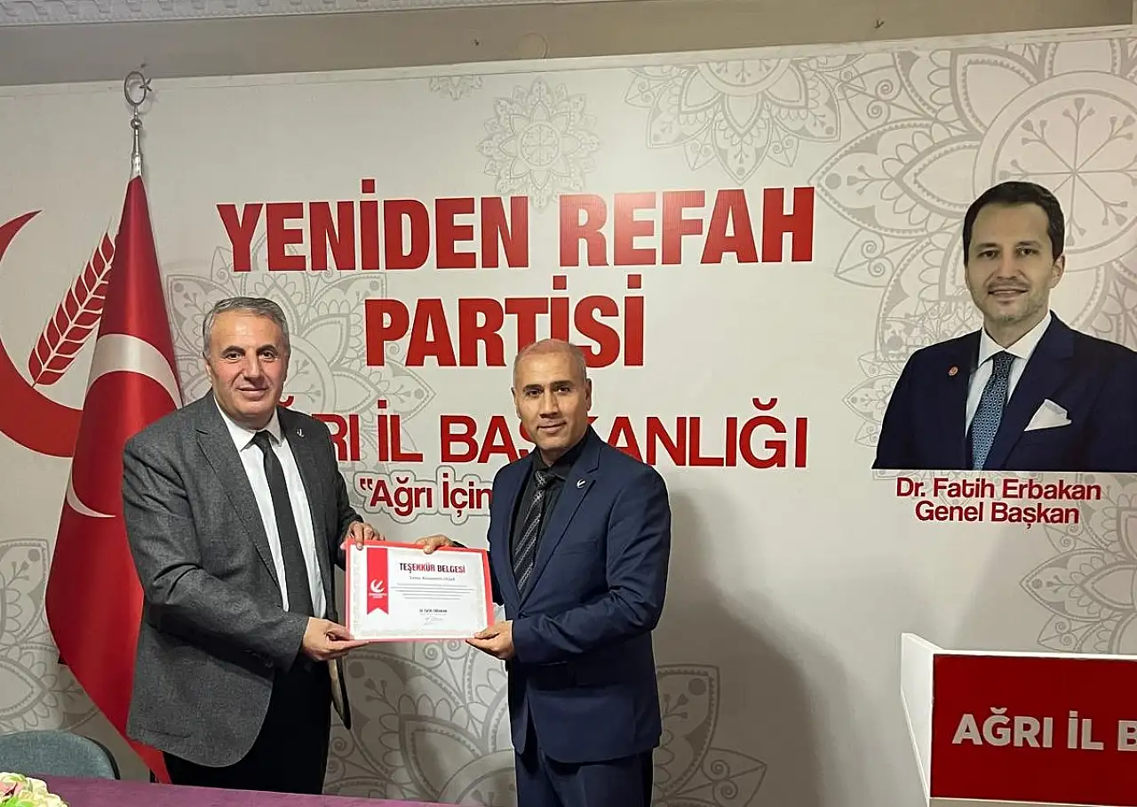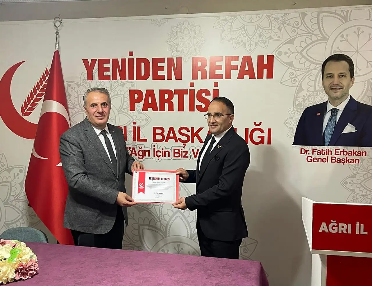 Ağrı Yeniden Refah Partisi, kongre katılımcılarına teşekkür belgelerini takdim etti