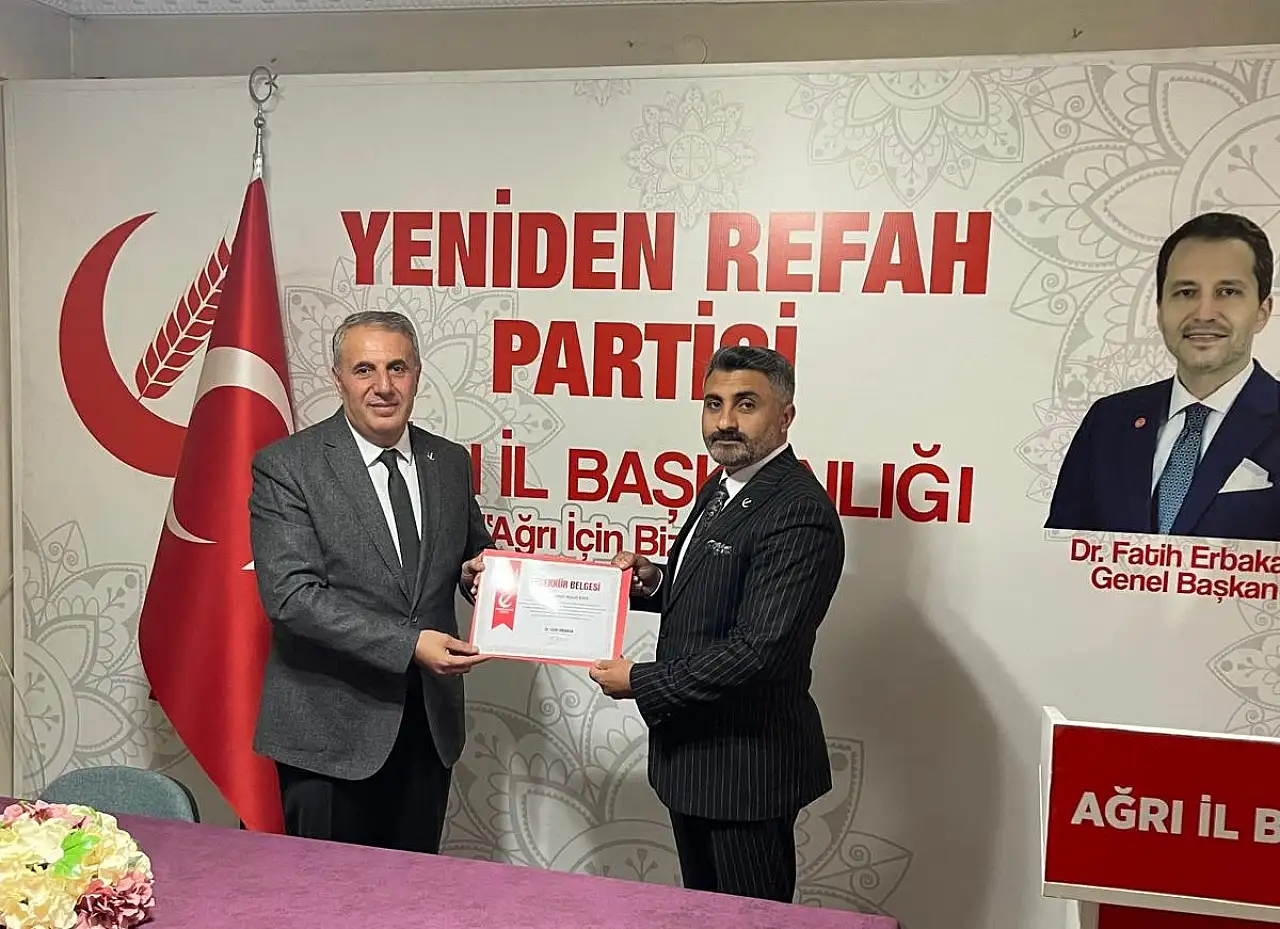 Ağrı Yeniden Refah Partisi, kongrelere katılan ilçe başkanlarına ve delegelere teşekkür belgelerini takdim etti.