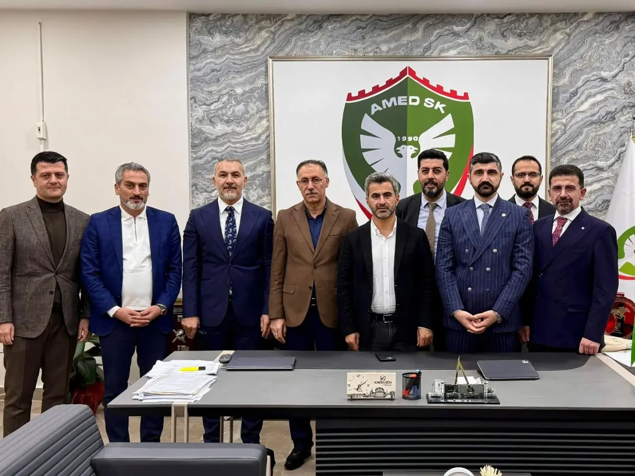 Ağrı Barosu Başkanı Av. Serdar Günakın, bölge baro başkanlarıyla birlikte Amed Sportif Faaliyetler Kulübü’ne ziyarette bulundu. Ziyaret kapsamında, kulüp başkanlığı görevine seçilen Diyarbakır Barosu önceki dönem başkanı Av. Nahit Eren tebrik edilerek yeni görevinde başarı dilekleri iletildi. Gerçekleştirilen ziyarette, sporun toplumsal yaşamda üstlendiği role ve kulüplerin kent kimliğine katkısına dikkat çekildi. Bölge baro başkanlarının da katılım sağladığı görüşmede, karşılıklı iyi dilekler paylaşıldı.