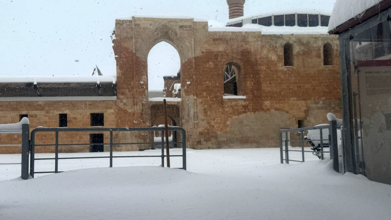 İshak Paşa Sarayı'nda kar temizleme çalışmaları