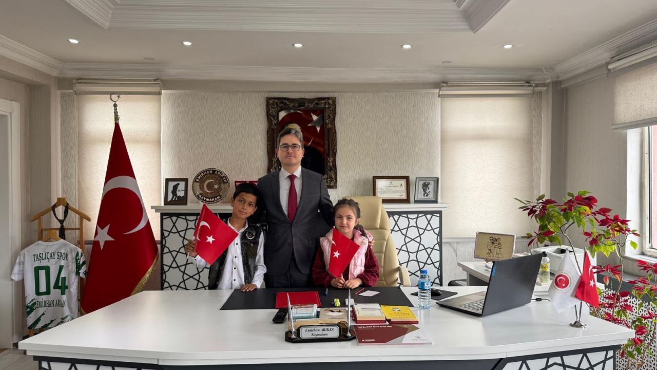 Ağrı’nın Taşlıçay ilçesinde 23 Nisan Ulusal Egemenlik ve Çocuk Bayramı etkinlikleri çerçevesinde anlamlı bir ziyaret gerçekleşti. Taşlıçay Kaymakamı Emirhan Arıkan, bayram vesilesiyle ilçedeki ilkokullardan gelen öğrencileri makamında ağırlayarak geleneksel temsili koltuk devri programını uyguladı.
