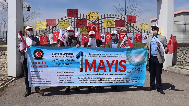 Ağrı’da da Hak-iş (Hak İşçi Sendikaları Konfederasyonu) 15 Temmuz Parkında düzenledikleri etkinlikte sosyal mesafe kurallarını da göz önünde bulundurarak İşçilerin 1 Mayıs İşçi Bayramı’nı kutladı. Ağrı Hak-iş İl Başkanı Ahmet Varol, Türkiye'nin bütün emekçileri, emeklileri, işsizleri, yoksulları, kadınları, erkekleri, gençleri, yaşlıları, engellileri, meslek sahipleri ve sivil toplum kuruluşları olarak; tüm dünya emekçileriyle birlikte yine 1 Mayıs'ta birlikte olduğunu söyledi. Varol, Korona virüs salgını nedeni ile kitlesel kutlama imkanı olmasa da, 1 Mayıs’ta, ekranlarda, illerin meydanlarında ve her yerde olduklarını belirterek, “Bizler güçlü, güzel yarınlar için, haklarda daha güçlü gelecek için, sağlığımız için, iş güvencemiz için, işimiz ve emeğimiz için, yine ve yüksek sesle haykırmak için meydanlardayız. Bu zor süreçte iş başında fedakarca, cesurca ve özveri ile çalışan başta sağlık, gıda, banka, taşıma, güvenlik, temizlik, haberleşme, basın, petrol ile kamu ve özel bütün sektörlerdeki tüm emekçi kardeşlerimize gönülden haykırarak teşekkür etmek için buradayız. Emekçi kardeşlerimize “Sen sağlığını koru, emeğini biz koruruz” diyoruz. Tüm emekçilerimizi Güvende olmak için HAK-İŞ ile birlikte mücadeleye davet ediyoruz.” İfadelerini kullandı.