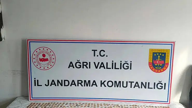 Ağrı'nın Doğubayazıt ilçesinde, tır dorsesinin yedek lastiği içerisine gizlenmiş 1245 altın sikke ele geçirildi.