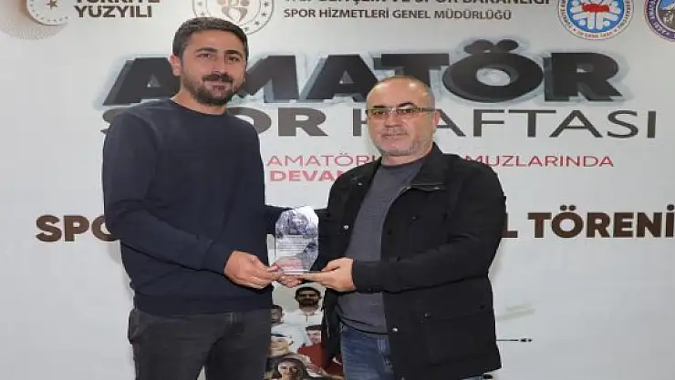 Gençlik Spor İl Müdürü Fedai Din ise yaptığı konuşmada amatör spor haftasını kutlayarak ödül alan sporculardan olimpiyatlara katılmak için daha çok çalışma sözü aldı. Programda Yılın antrenör ödülleri Boks branşında Türkiye Şampiyonu yetiştiren Volkan Sarı ve vücut geliştirme branşında Çetin Demir’e verilirken, Boks branşında 54 kg’da Türkiye Şampiyonu olan Mir Boran Yıldırım, 58 kg’da Türkiye üçüncüsü olan Yusuf Saltan, 63 kg da Türkiye Şampiyonu olan Abdullah Ömer Gökçe ve 50 kg ‘da Türkiye ikincisi olan Ramazan Alptekin ödüle layık görülen isimler oldu.
