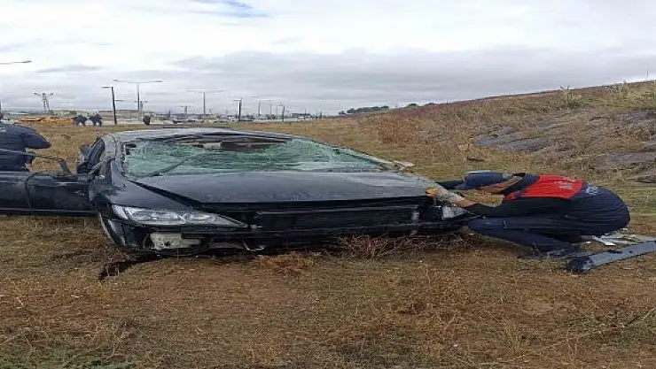 Ağrı'da sağanak yağış nedeniyle kayan otomobil şarampole yuvarlandı.