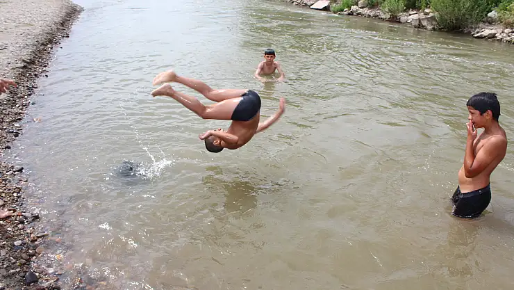 Son zamanların en sıcak Temmuz ayının yaşandığı Ağrı’da hava sıcaklığı 40 derecenin üzerinde seyrediyor. Sıcak havalar yediden yetmişe vatandaşları olumsuz yönde etkiliyor. Sıcaktan bunalan çocuklar Yüzüncü Yıl Mahallesi’nden geçen ve Fırat Nehri’nin en önemli kollarından biri olan Murat Nehri’ne girerek serinlemeye çalışıyor.